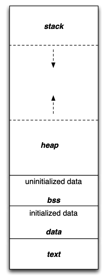 - Text:文本区,也称代码区(Code Segment),存放着可执行指令。这个区域的数据一般是只读的。